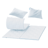 For example: pillows with pillows, duvets with duvets, or bedding with bedding.